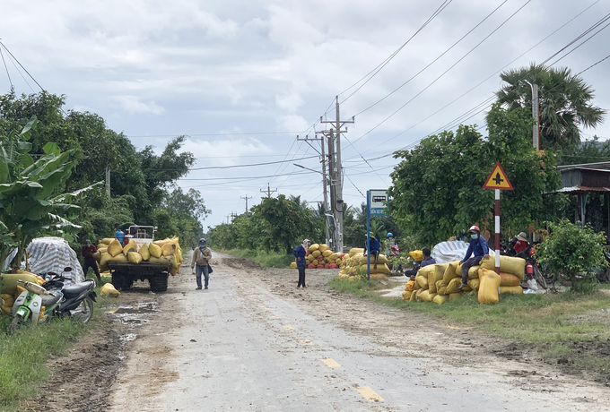 Khi cắt lúa xong, thương lái tiếp tục ép giá, chỉ mua 5.000 đồng một kg nếu không sẽ bỏ cọc. Với tình cảnh “tiến thoái lưỡng nan” này, nếu không bán cho thương lái cũ thì khó tìm người mua mới, trong khi lúa đã cắt rồi, để lâu sẽ càng mất giá.