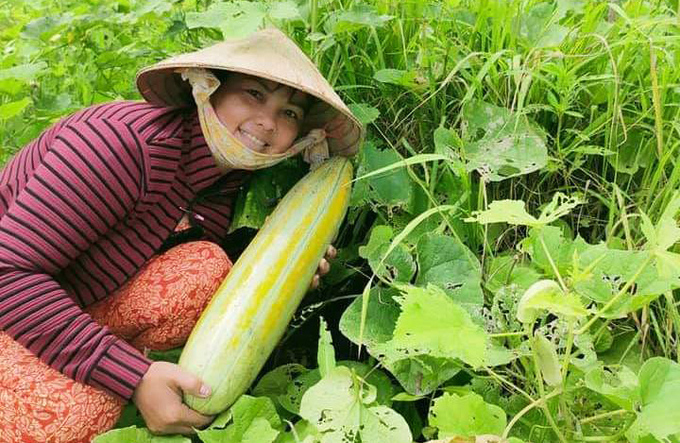 Gần đó, chị Nguyễn Thị Thuỳ Trang cùng em gái trồng đậu bắp, cải, đậu đũa, rau muống, dưa gan xen với cây ăn trái và bán online. Ngày nào em gái chị, Thùy Trang cũng đi giao ít thì vài ký, nhiều có khi vài chục ký cho khách quen.